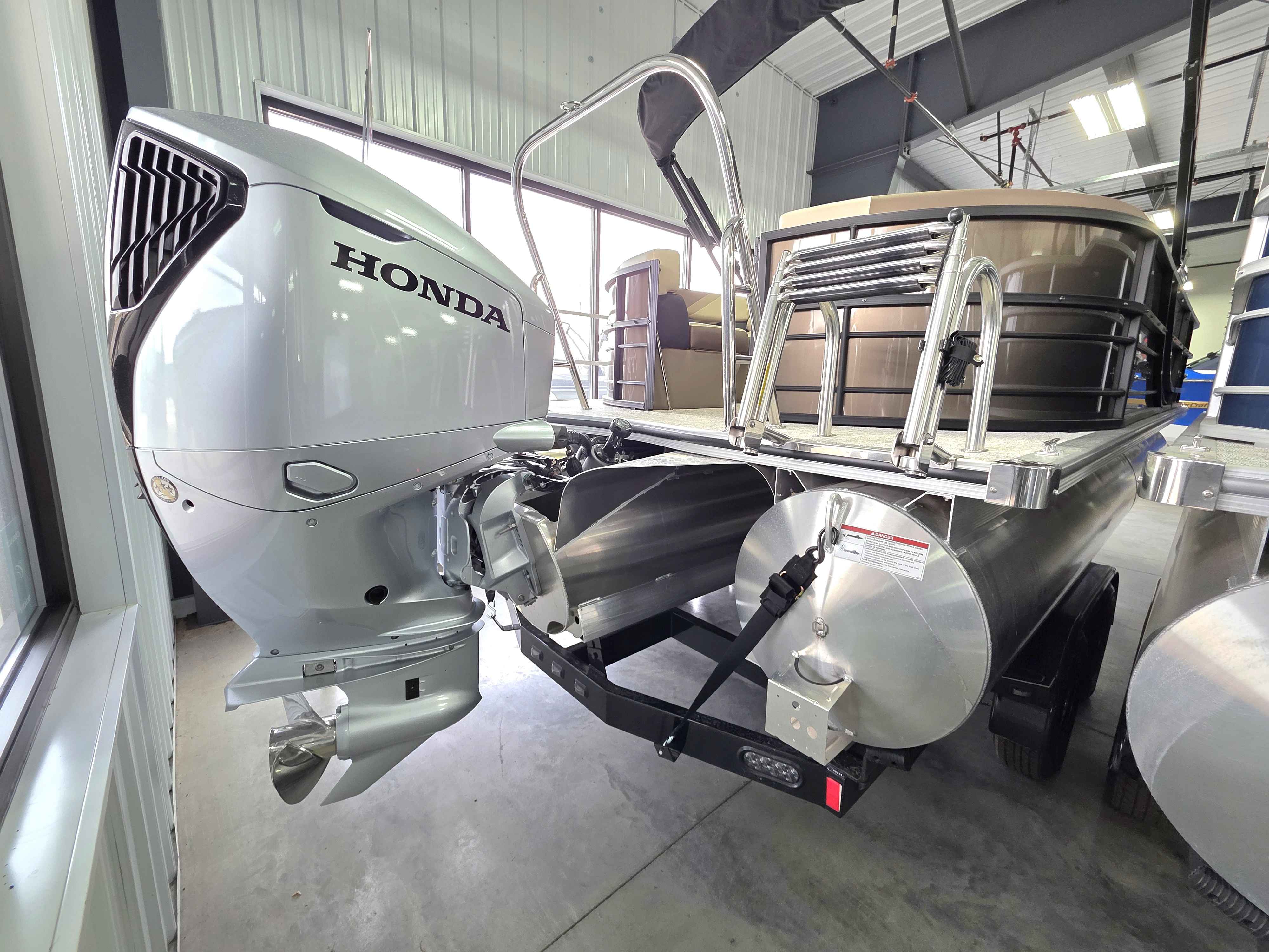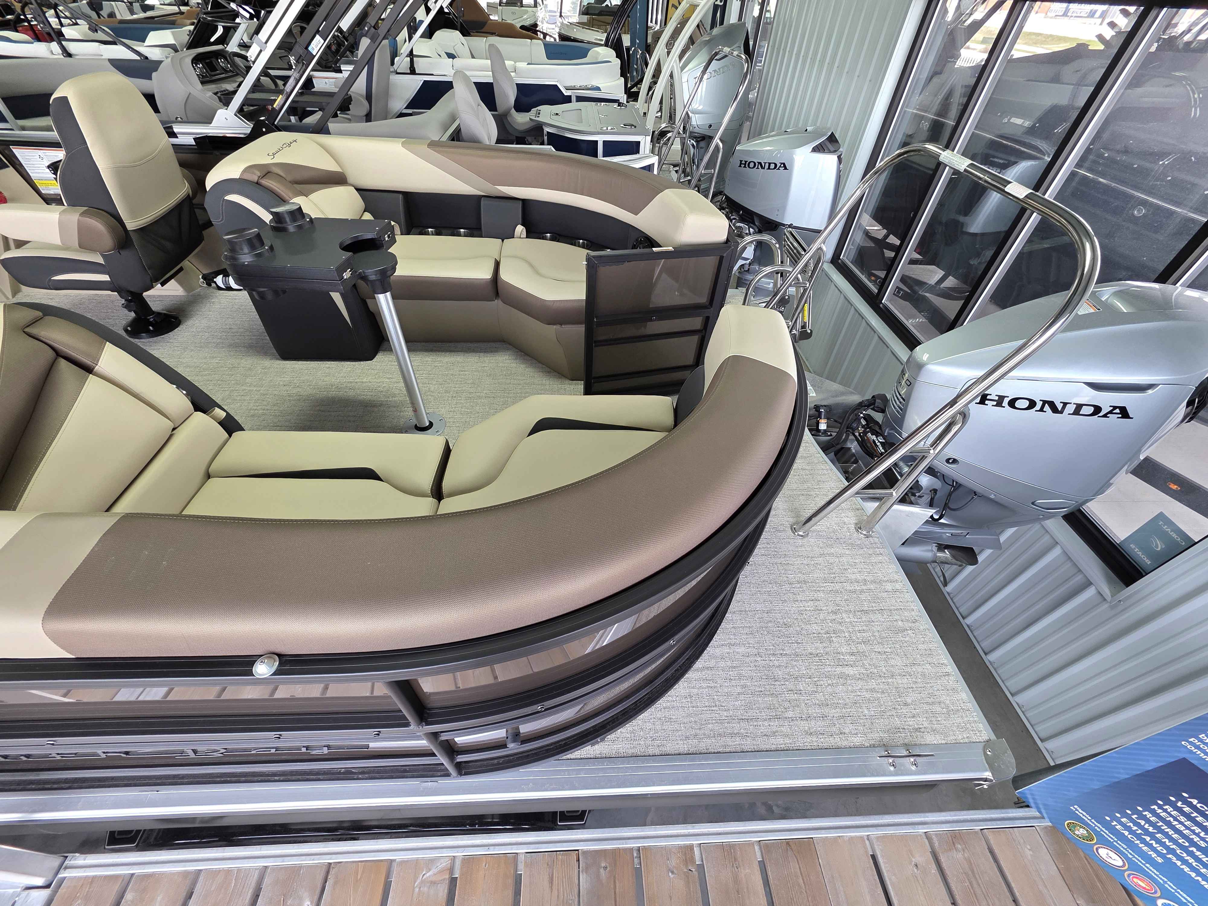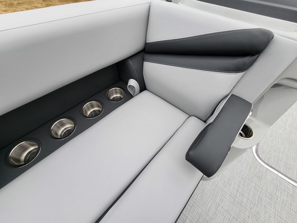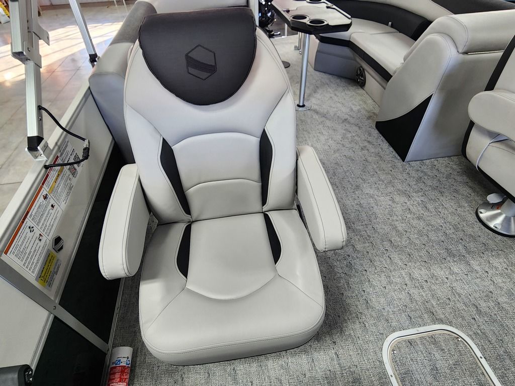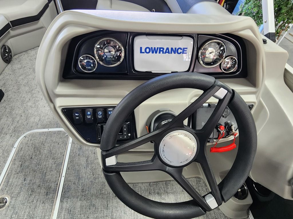 Exterior: Caribou Brown and Bronze with Blackout Rail Package, Interior: Latte TT and Caribou Brown, Flooring: Latte Standard, TriToon - Full Center Tube, Honda 200HP Outboard Motor, In-Floor Storage, Power Assist Steering, Power Electric Bimini, Mooring Cover in Coal, Lowrance Hook 5 Display, HD Folding Table, SS Ski Tow Bar, Trailer, and Many More Specs