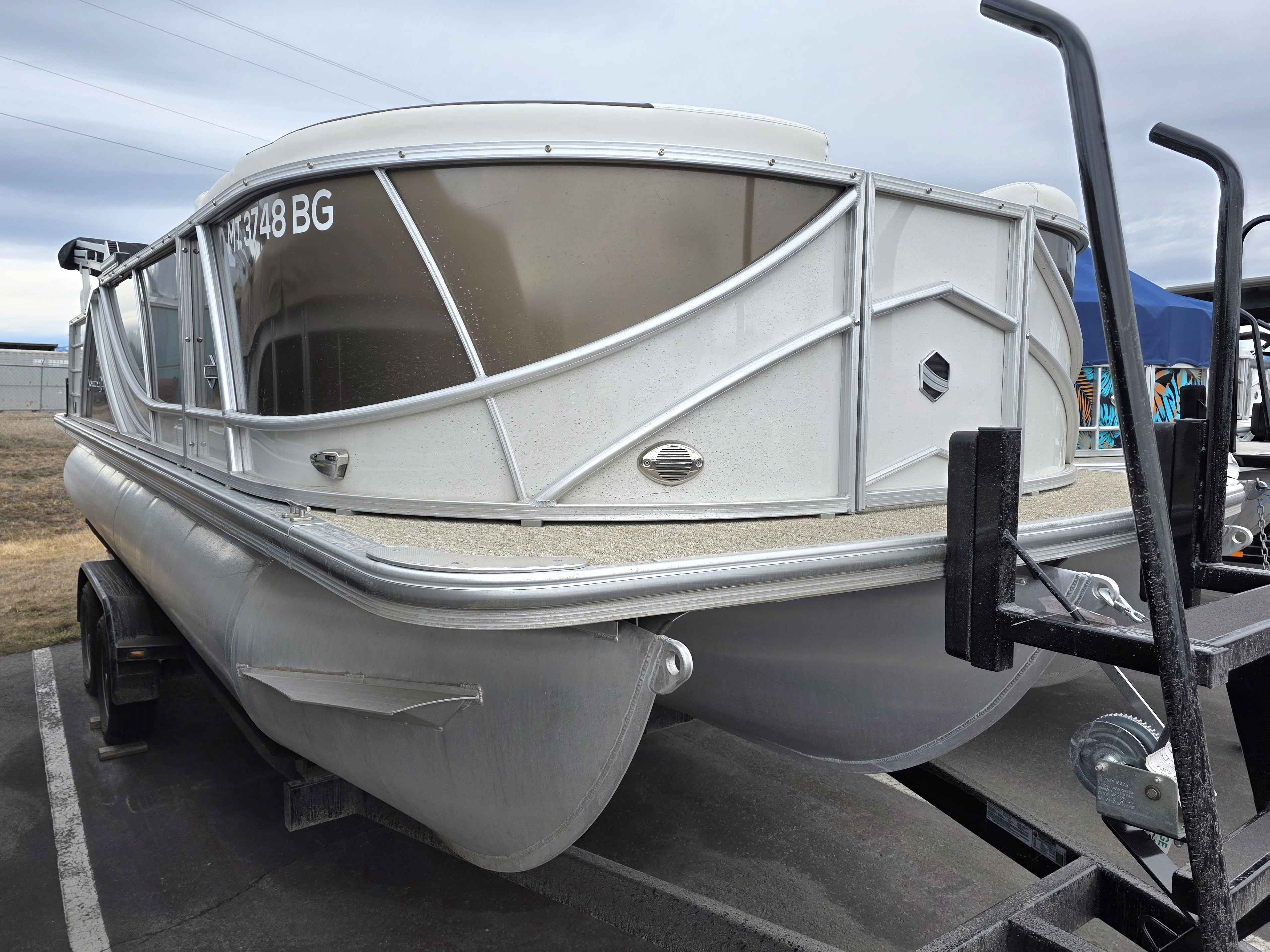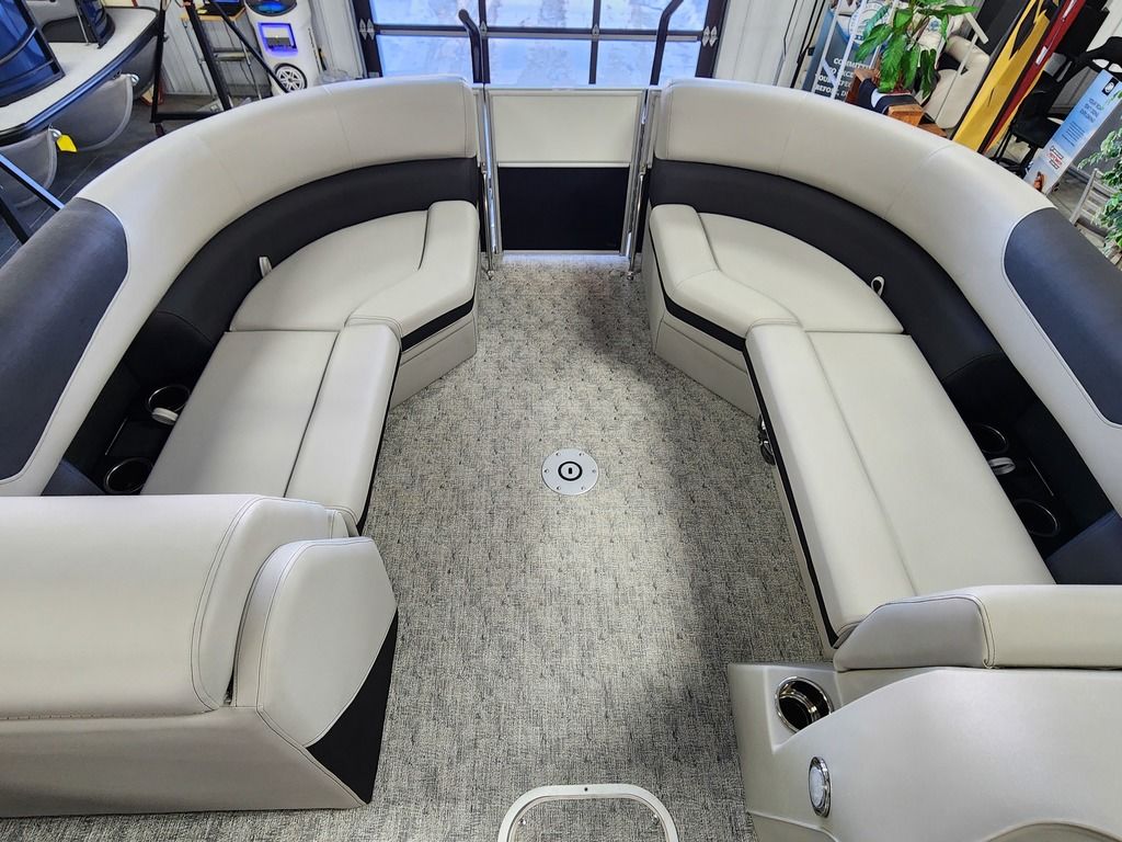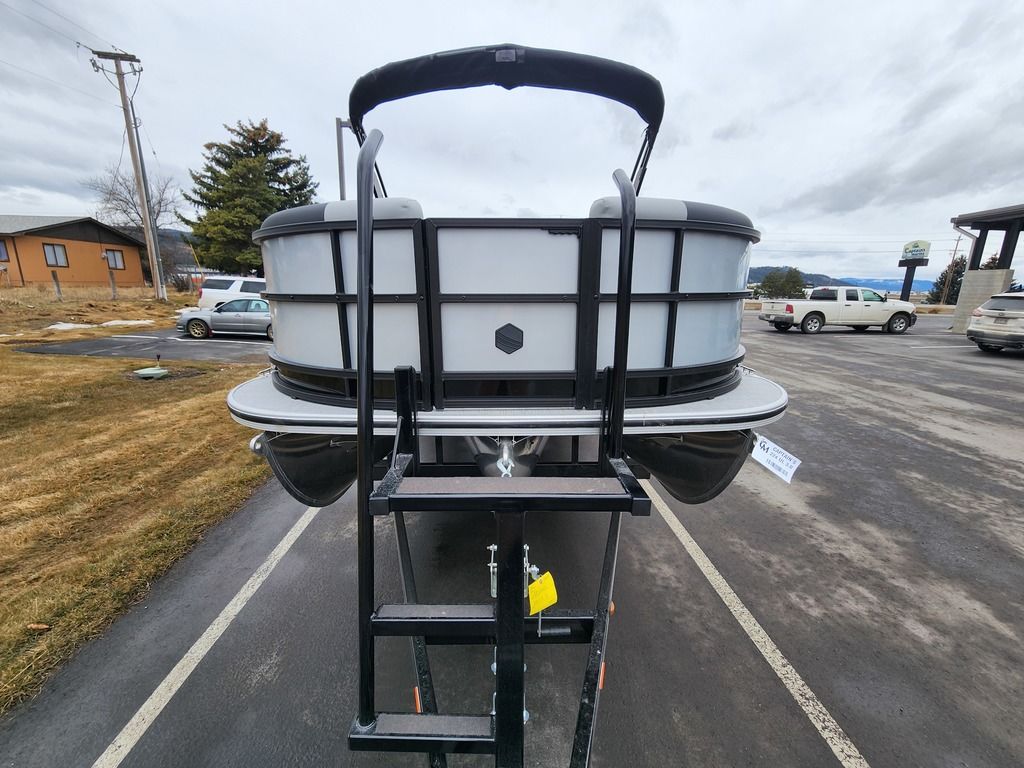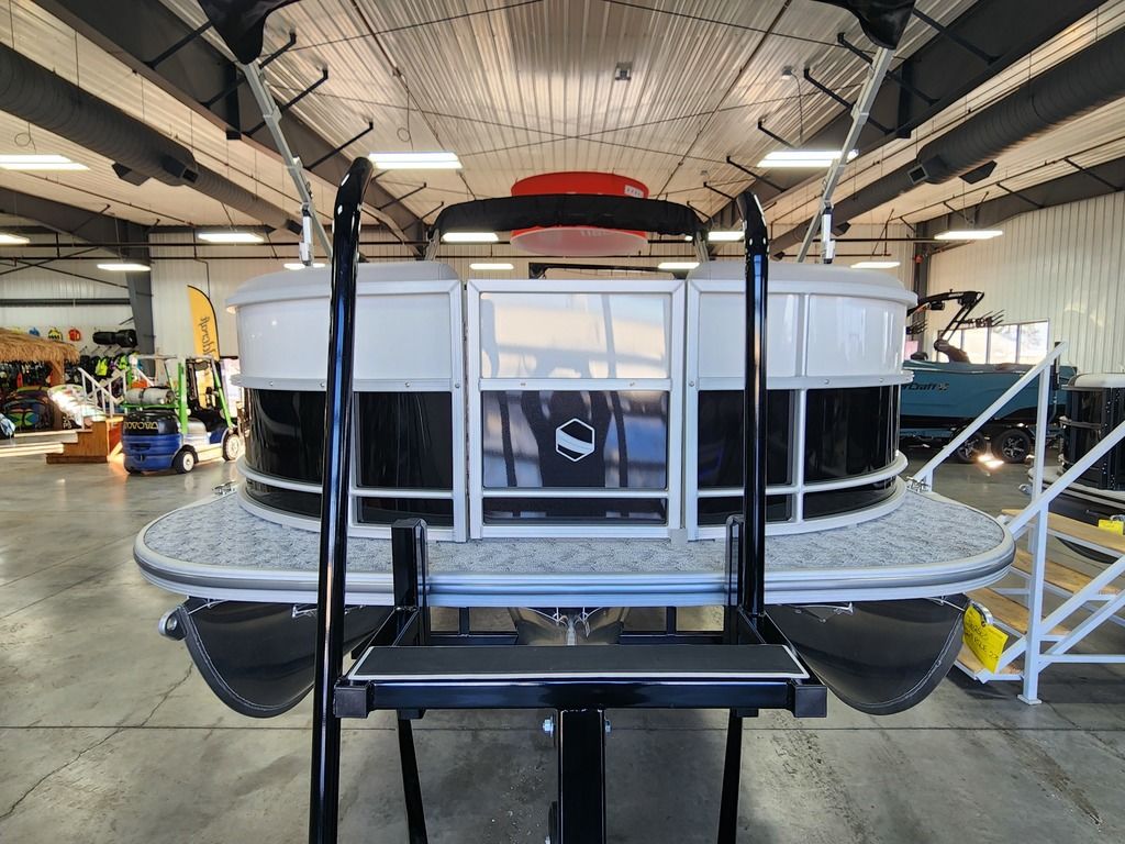Exterior: Black Onyx and Pearl White with Blackout Rail Package, Interior: Granite and Black Onyx, Flooring: Coastal Concrete Standard, TriToon - Center Sport Tube, Power Electric Bimini, Mooring Cover in Coal, Lowrance Hook 5 Display, HD Folding Table, SS Ski Tow Bar, Trailer, and Many More Specs