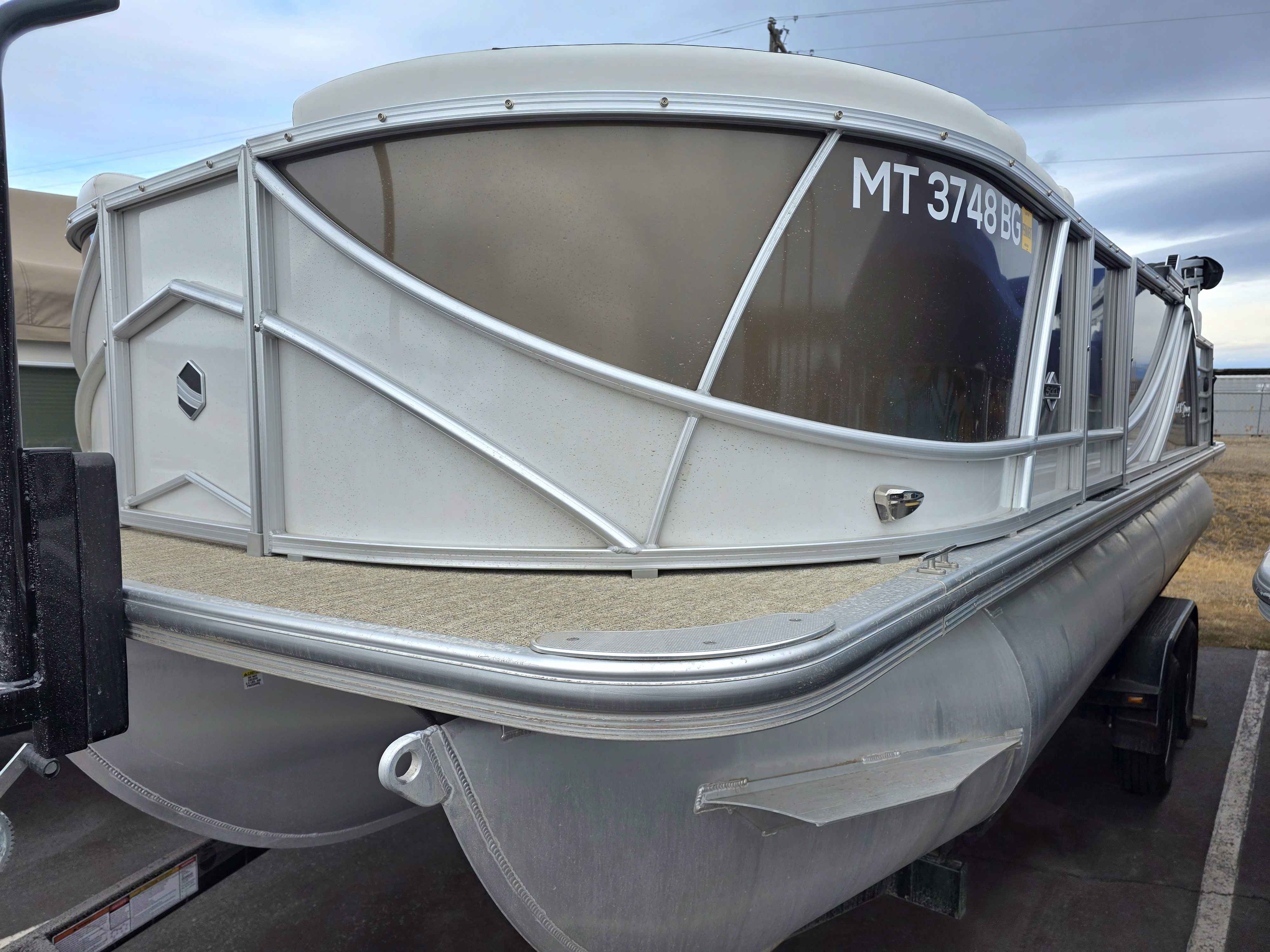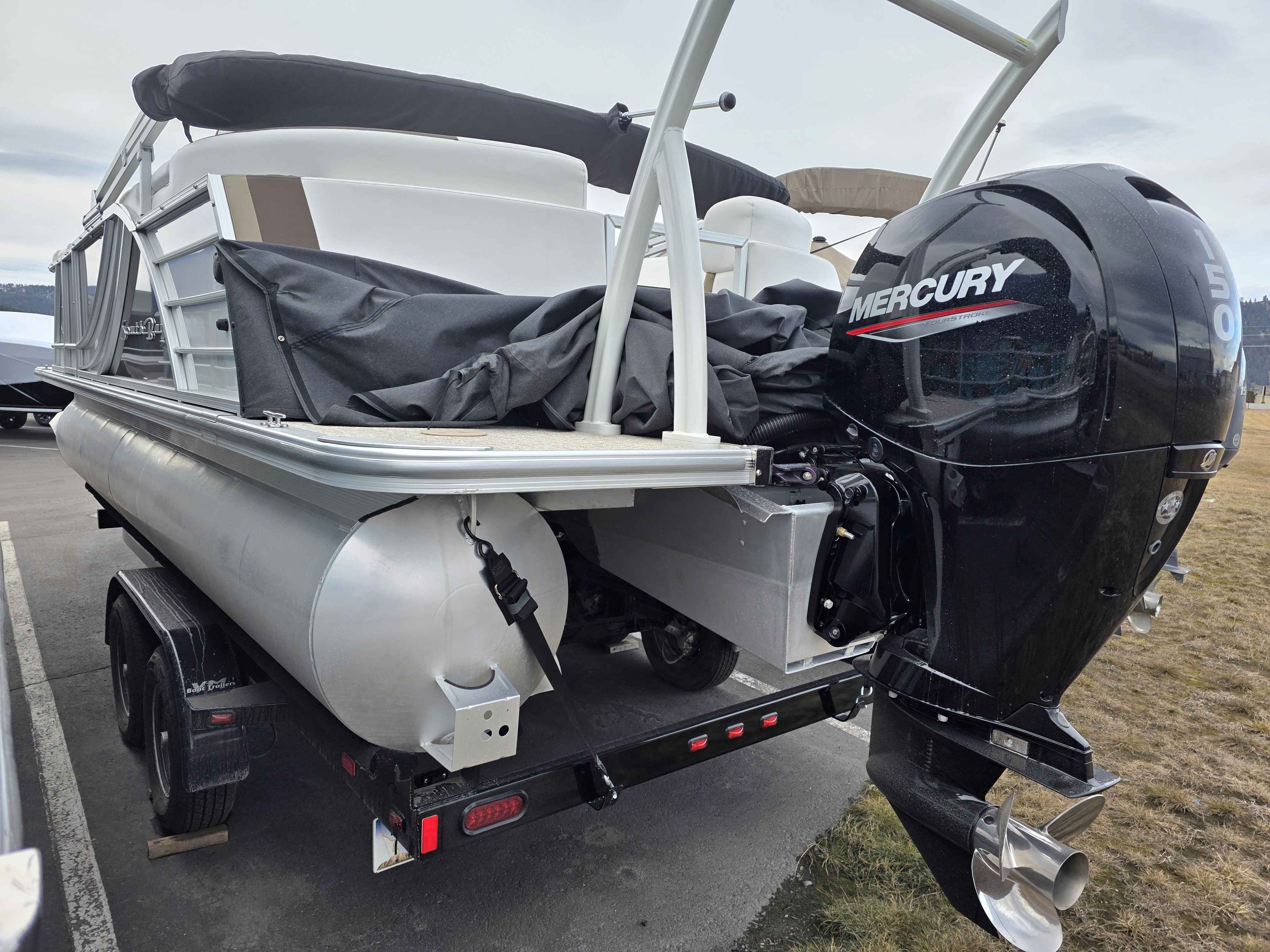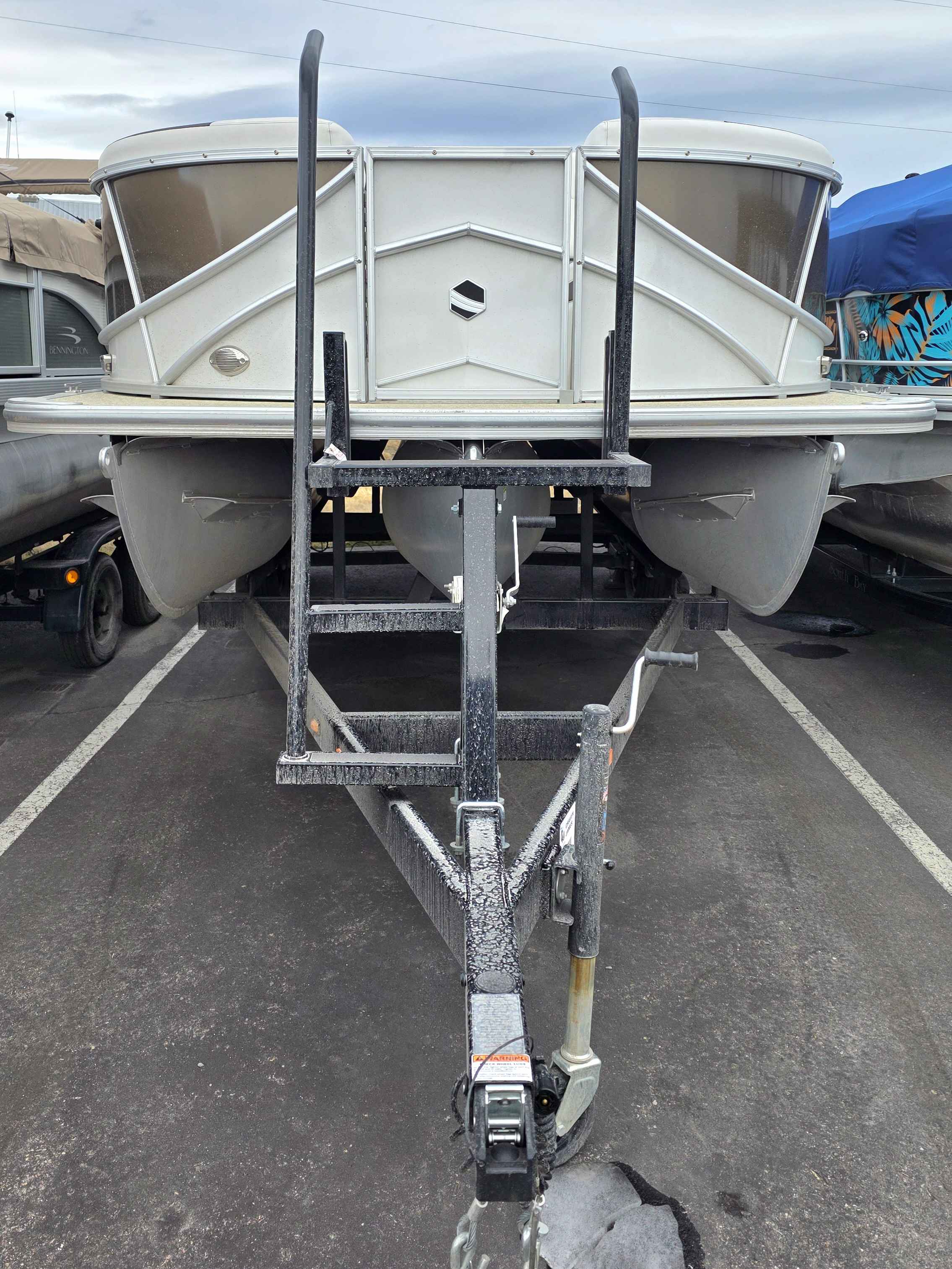 Exterior: Black Onyx and Pearl White with Blackout Rail Package, Interior: Granite and Black Onyx, Flooring: Coastal Concrete Standard, TriToon - Center Sport Tube, Power Electric Bimini, Mooring Cover in Coal, Lowrance Hook 5 Display, HD Folding Table, SS Ski Tow Bar, Trailer, and Many More Specs