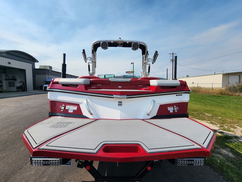 Exterior: Midnight Black and Pro Tour Red Flake with Black Satin Designator, Interior: Coolfeel Jet Black, with Heathered Charcoal Seat Boxing, Ilmor 6.2 GDI VD 2.1 Supercharged Engine, Gray Deckadence Flooring, Midnight Black Windshield, Under Tower Boat Cover in Black, Stern Thrusters, Surfstar System with Fastfill Ballast, All black Z1000 Tower with Premium Bimini, XL Clamping Board Racks in Black, Dual Screen Command Center with MAAX and Tower Audio, Heater, Transom Rear Facing Lights, Swim Step Fiberglass Swim Platform in Pro Tour Red Flake, Subfloor Murphy Seat, Underwater Lighting, Heated Observer and Helm Seat, Cordova Premium Cooler, Bow Filler Cushion, Transom Lounge Seating, Tandem Axle MasterCraft Trailer with Premium Steps, Illuminated Bow Ladder, + Many more specs