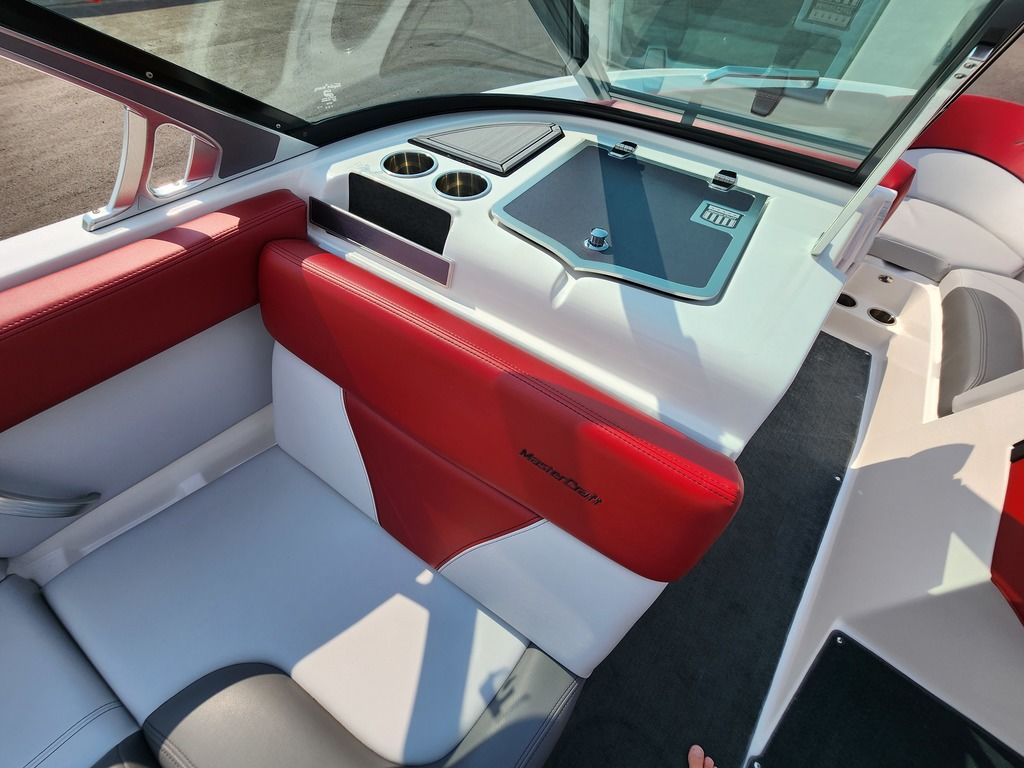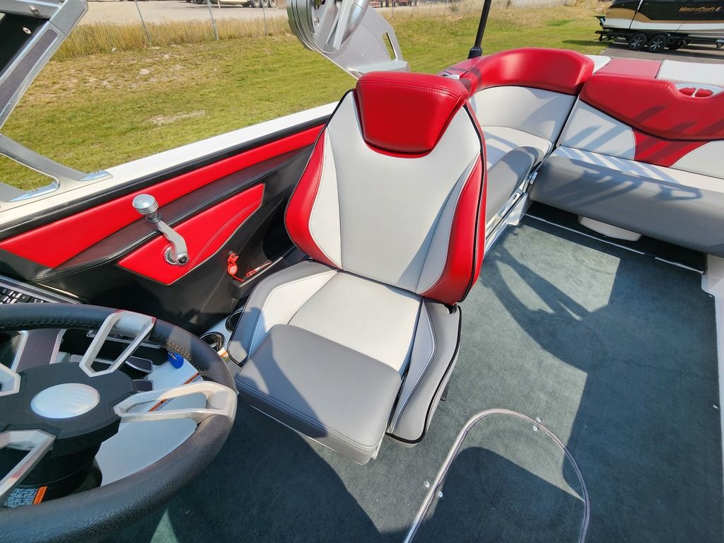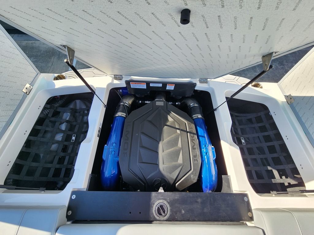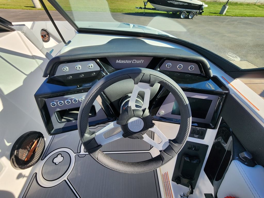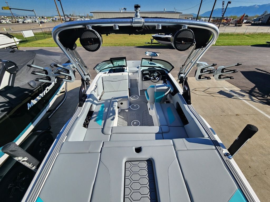 Exterior: White and Laguna Blue, Interior: Bowmore Stealth Gray, and Bowmore Laguna Blue, Ilmor 5.3L GDI HO VD Engine, SeaDek flooring in Gray, Z6 Tower with 2 M80 Can Speakers, Heater, Rear Storage Nets, Cooler, Pass-thru Storage, 7" Touch Screen Dash, Clamping Board Racks, Single Axle MasterCraft Trailer with Brakes + Many more specs