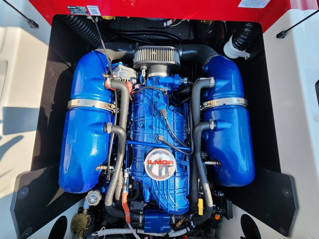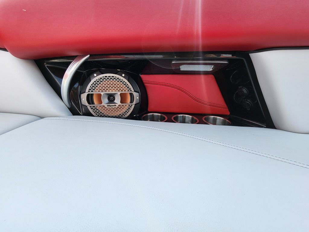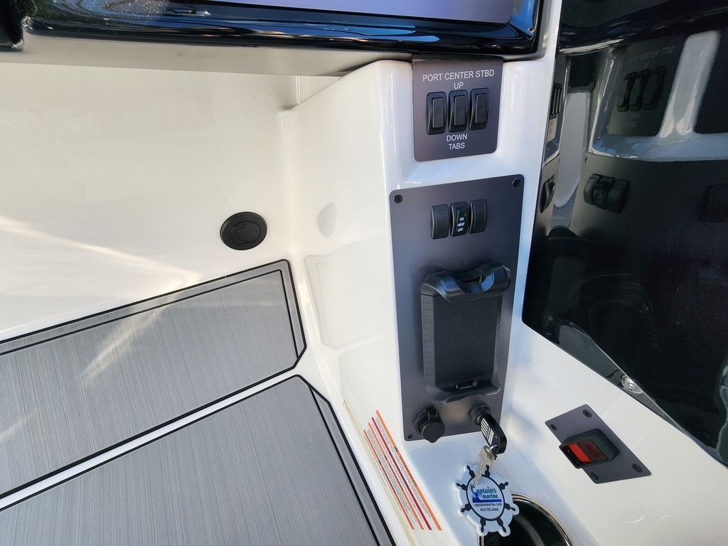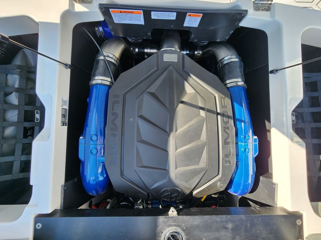 Exterior: White, Black, and Navy Blue, Interior: Bowmore Navy Blue, Bowmore White, Bowmore Stealth Gray, Deckadence Flooring (Gray), Ilmor 5.3L GDI HO VD 2.1 Engine, White Z6 Tower with 2 M80 Can Speakers and Silver Clamping Board Racks, Convertible Center Rear Seating, BTS Windshield in Silver, Heater, Sunpad Flip Seating, Docking Lights, Activ-View Panoramic Mirror, Rear Storage Nets, SoundStage Audio, Under Tower Cover + Many More Specs