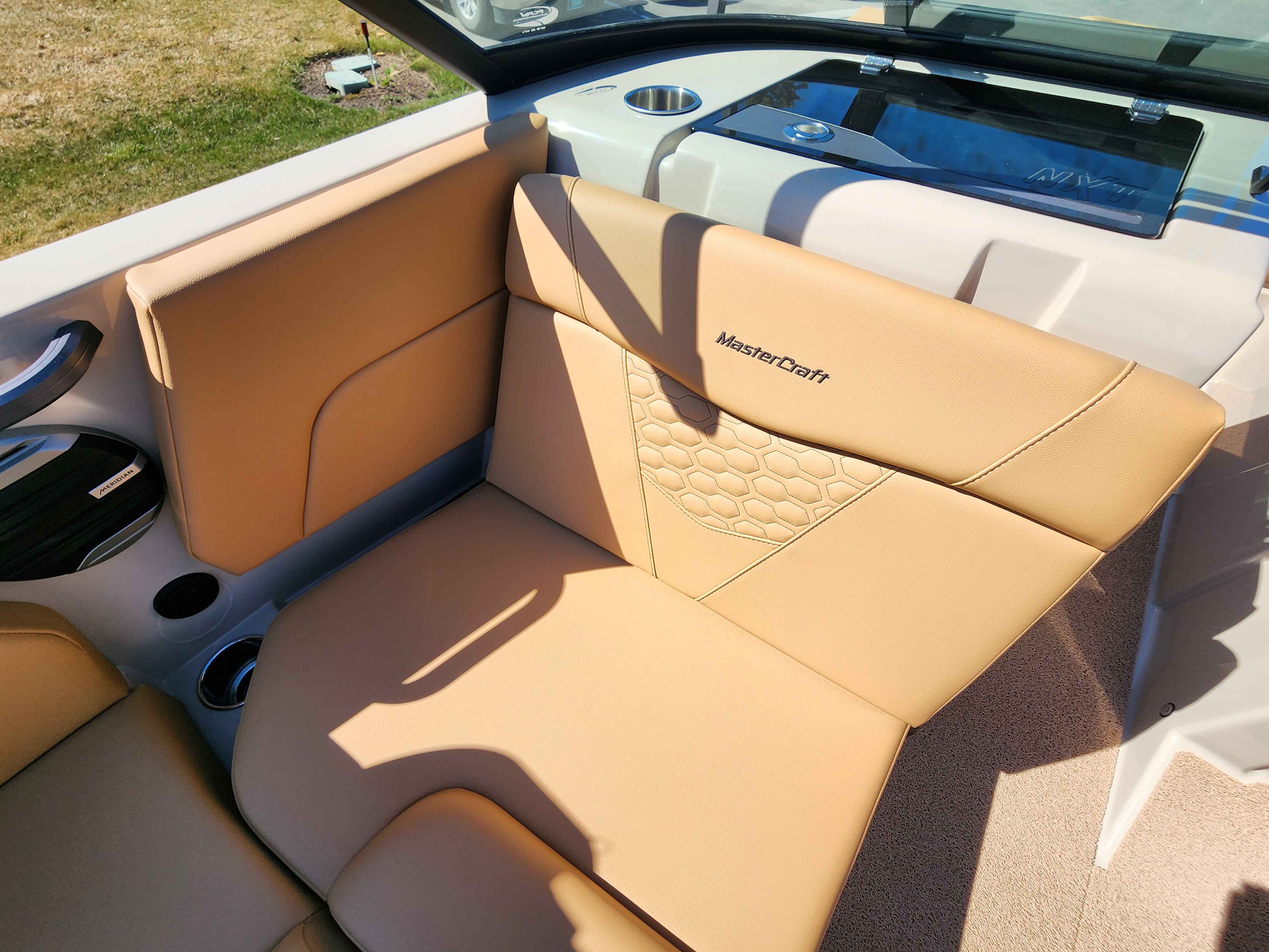 Exterior: Stone and Midnight Black, Interior: Bowmore Beach Tan, Deckadence Flooring (Tan), Black MasterCraft Emblem, Ilmor 5.3L GDI HO VD 2.1 Engine, Z6 Tower with 2 M80 Can Speakers and Clamping Board Racks (Black), Heater, Activ-View Panoramic Mirror, Rear Storage Nets, Under Tower Cover, MasterCraft Trailer + Many More Specs