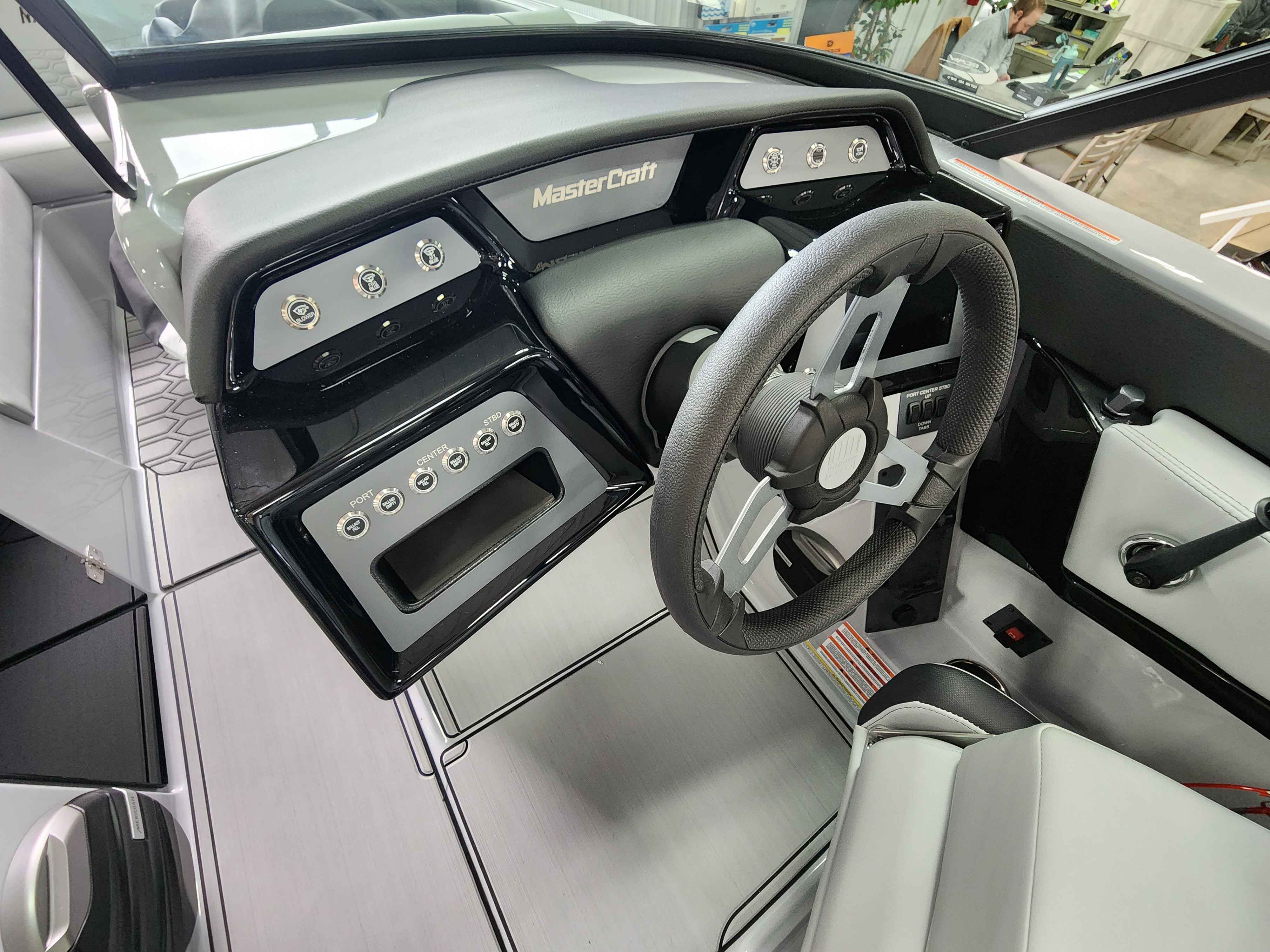 Exterior: Midnight Black & Stealth Gray, Interior: Bowmore Stealth Gray, Coolfeel Jet Black, Black Satin MasterCraft Emblem, SeaDek Flooring in Gray, Ilmor 5.3L GDI HO VD 2.1 Engine, Black Z6 Tower with 2 M80 Can Speakers & Black Clamping Board Racks, Center Convertible Rear Seating, Heater, Acrylic Walkthrough Door, Activ-Vew Panoramic Mirror, Rear Storage Nets, Under Tower Cover, MasterCraft Trailer + Many More Specs