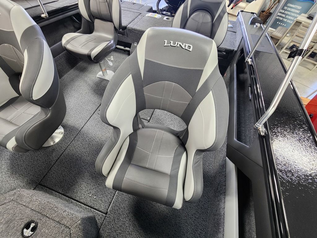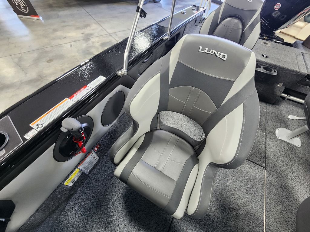 Exterior: All Black, Interior: Lund Gray Interior and Vinyl Main floor in Gray, Mercury 60HP Outboard Motor, Additional Pro Ride Seat, 2 Step Port Side Ladder, Aft Flip Up Seat, Humminbird Helix5 Chirp GPS G3 Console, Minn Kota PowerDrive Trolling Motor, Travel Cover, Trailer with Spare Tire + MANY more specs